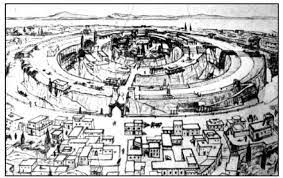 Shott el Jerid. With concentric walls enclosing what appears to be a centralized